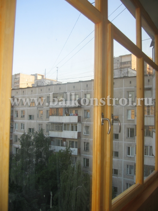 Фото остекления деревом, в Химках. Остекление при помощи однослойных деревянных окон – очень удачное решение для балкона. Для этого случая была выбрана древесина сосны, к ней отлично подошла фурнитура из серебристого металла. Поверхность обработана защитным бесцветным лаком, что значительно продлевает срок эксплуатации стеклопакетов. Большая площадь остекления позволяет сделать помещение просторным и светлым. Часто задаваемый вопрос: Во сколько обходятся дешевые окна из дерева? |