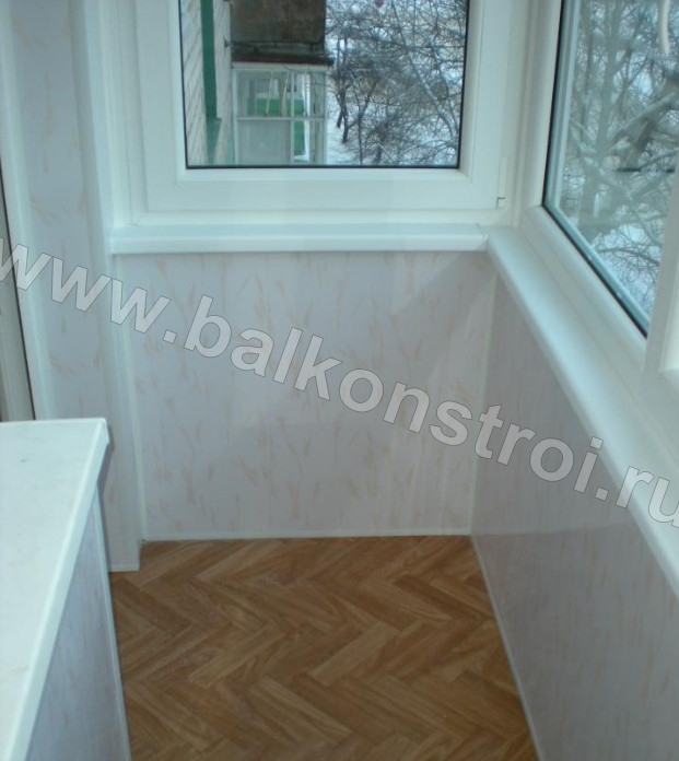 ![]() Отделка балкона светлой пластиковой вагонкой |