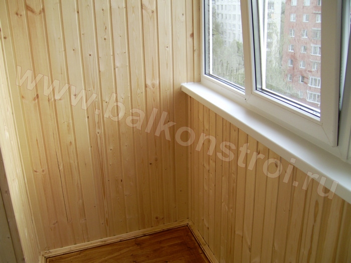 Фото отделки балкона вагонкой из натурального дерева в Долгопрудном. Сейчас на отечественном рынке представлены 2 основных вида вагонки – вагонка из натурального дерева класса А и В. У каждого из этих материалов для отделки есть как свои сферы применения, так и плюсы и минусы. Вагонка из натурального дерева класса А преимущественно используется при отделке балконов в дорогих квартирах, при этом ее основными преимуществами являются хорошая прочность и надежность, высокая экологичность материалов, их натуральный вид. Это создает атмосферу природной гармонии на балконе, особенно в сочетании с расположенными здесь комнатными цветами. В то же время деревянные материалы более дорогостоящие, подвержены солнечному воздействию и требуют в дальнейшем дополнительного ухода. Вагонка класса В используется для скрытой облицовки. |